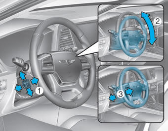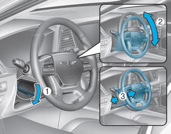 2. Отрегулируйте рулевое колесо по нужный угол (2) и высоту (3).