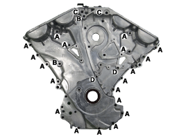Компоненты крышки цепи привода ГРМ и расположение компонентов