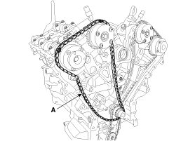 Снимите адаптер узла автоматического натяжителя цепи привода ГРМ (А).
