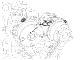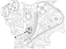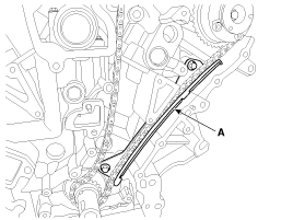 Снимите левый кулачок цепи ГРМ с направляющей кулачка (А).