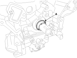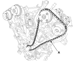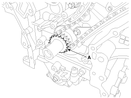 Снимите звездочку коленчатого вала (А). (привод левого распределительного вала)