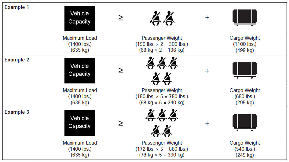 Максимальная грузоподъемность автомобиля общий вес пассажиров и груз. Если ваш автомобиль оснащен с прицепом, общий вес включает нагрузку на язык.