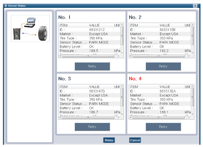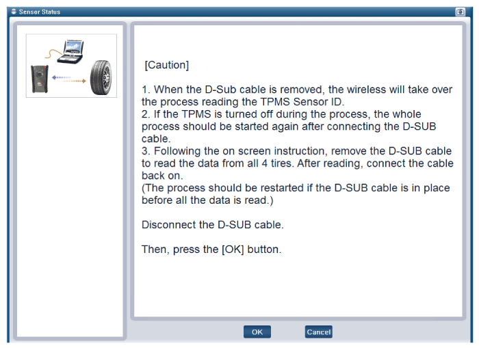 Выберите «модель автомобиля» и «TPMS» на экране выбора автомобиля GDS, затем нажмите «ОК».