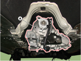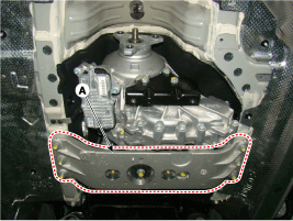 Снимите поперечину (А), подперев масляный поддон коробки передач домкратом коробки передач.
