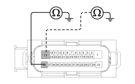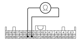Измерьте сопротивление между контактами (M08) 33 и 34 бокового разъема жгута проводов комбинации приборов.