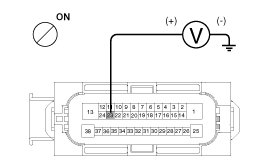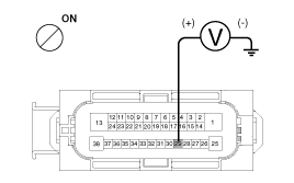 Измерьте напряжение между контактом (M08) 39 бокового разъема жгута проводов комбинации приборов и массой кузова.