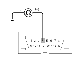 Измерьте напряжение между выводом 16 разъема канала передачи данных и массой кузова.