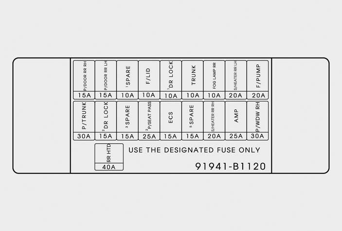 Hyundai Genesis: Описание панели предохранителей/реле / Панель предохранителей багажника