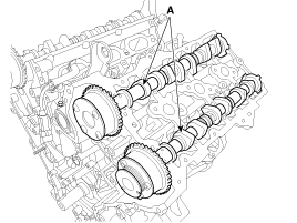 Снимите левый/правый распределительный вал в сборе (А).