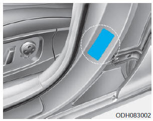 Этикетка шины, расположенная на водительском