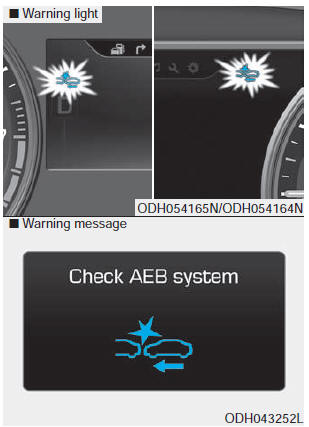 Hyundai Genesis: автономное экстренное торможение (AEB) / сигнальная лампа и сообщение