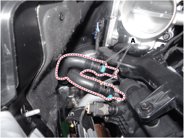 Отсоедините впускной и выпускной шланги отопителя (А).