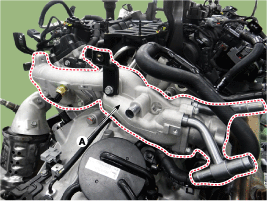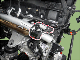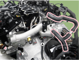 Снимите шланг охладителя ATF (А), шланг отопителя (В).