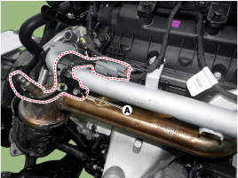 Снимите кронштейн кислородного датчика (А) и кронштейн датчика (В).