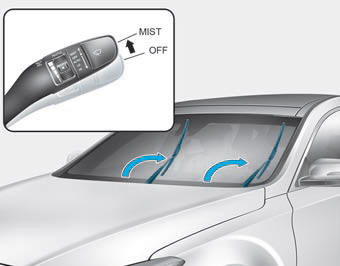 После выключения двигателя переместите стеклоочиститель переключается на одиночный режим (MIST) положение в течение 20 секунд и удерживайте переключатель более 2 секунд пока щетка стеклоочистителя не окажется в полностью поднятое положение.