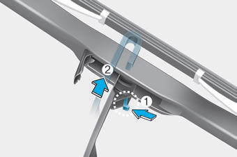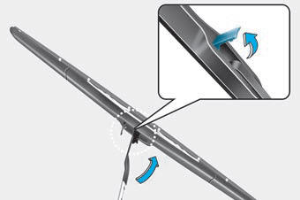 2. Поверните зажим щетки стеклоочистителя. Затем поднимите зажим лезвия.