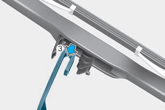 4. Нажмите на рычаг стеклоочистителя (3) и установите новый узел лезвия в порядок снятия обратный.