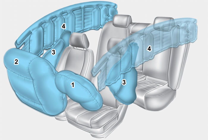 Подушки безопасности, установленные на вашем автомобиле, могут отличаться от показанные на иллюстрации.
