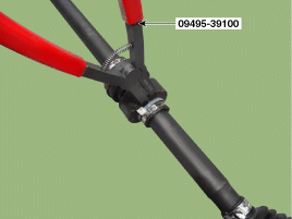 С помощью специального инструмента (09495-39100) затяните хомуты сильфонного уплотнения.
