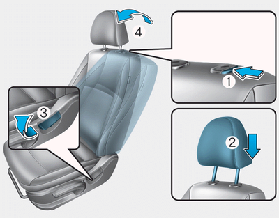 3. Нажмите кнопку разблокировки подголовника (3), пока потянув за последний (4).