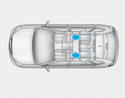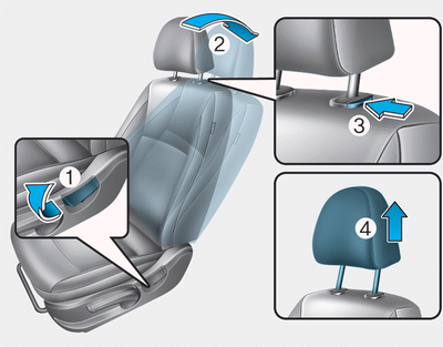 Если наклонить спинку вперед вместе с подголовником и сиденьем поднят, подголовник может коснуться солнцезащитного козырька или другого часть транспортного средства.