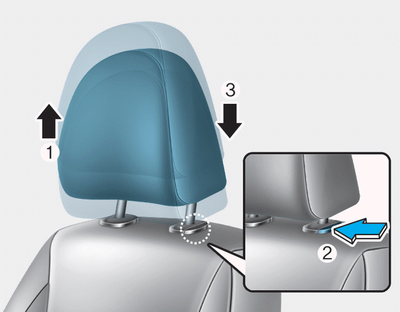 Чтобы поднять подголовник, потяните его в нужное положение (1). Для опустите подголовник, нажмите и удерживайте кнопку (2), расположенную в основании подголовник, затем опустите подголовник в нужное положение (3).