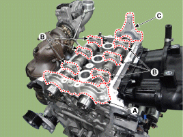 крышку заднего подшипника распределительного вала (C) в