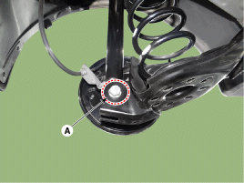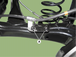 Ослабьте болты (А), затем снимите задний амортизатор.