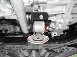 Снимите стабилизатор поперечной устойчивости (А) с подрамника, ослабив