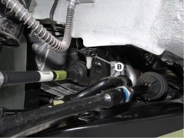 Снимите фитинг стабилизатора поперечной устойчивости (В) с поперечины в сборе.