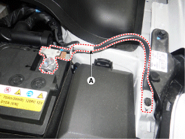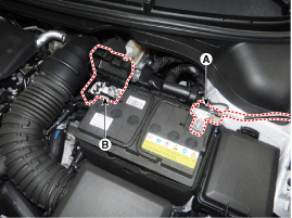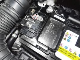 Отсоедините отрицательную (-) клемму аккумуляторной батареи (А).