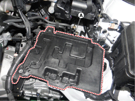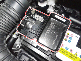 Снимите аккумуляторный ящик (А) после ослабления крепежных болтов.