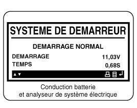 При пусковом напряжении и результатах теста стартера отображаются результаты
