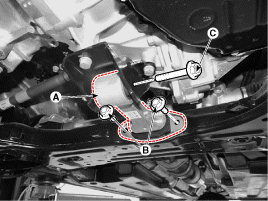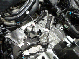 Снимите узел цилиндра выключения сцепления (B) после откручивания