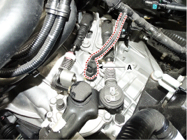 Отсоедините разъем выключателя фонарей заднего хода (А).