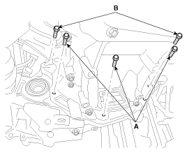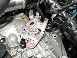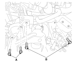 Снимите крепежные болты (А-3 шт, В-2 шт) с нижней части
