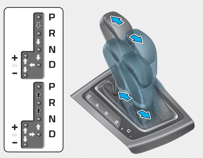 нажмите кнопку переключения передач, а затем переместите рычаг переключения передач