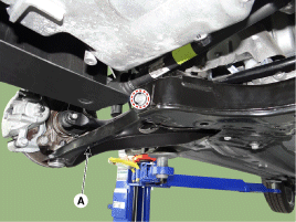 Ослабьте гайку (А) и отделите шаровой шарнир от нижнего рычага.
