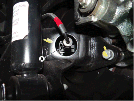 Отсоедините разъем датчика скорости вращения колеса (А).