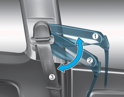 Чтобы отрегулировать высоту точки крепления ремня безопасности, опустите или поднимите регулятор высоты в положение соответствующий.