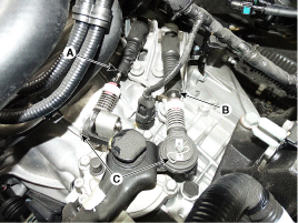 Снимите фиксатор (А), предварительно ослабив гайку (В-2 шт).