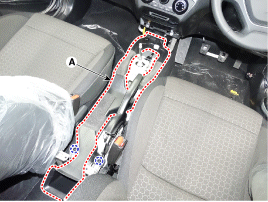 Снимите стопорное кольцо (А) и отсоедините трос выбора передач.