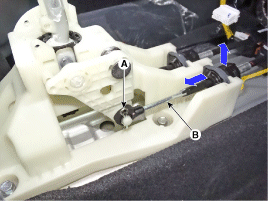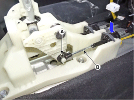 Установите трос выбора (B), а затем прикрепите стопорное кольцо (A).