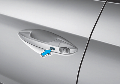 Чтобы отпереть двери, нажмите кнопку на ручке снаружи двери, имея при себе электронный ключ, или нажмите кнопка отпирания двери на смарт-ключе.