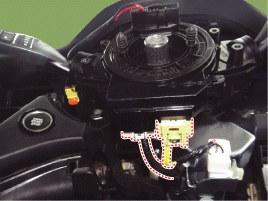 Отсоедините поворотный переключатель и разъем звукового сигнала,