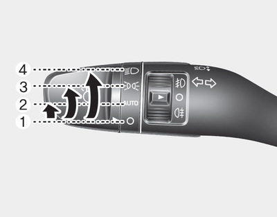 Чтобы включить свет, поверните кнопку, расположенную в конце управления в одно из следующих положений: