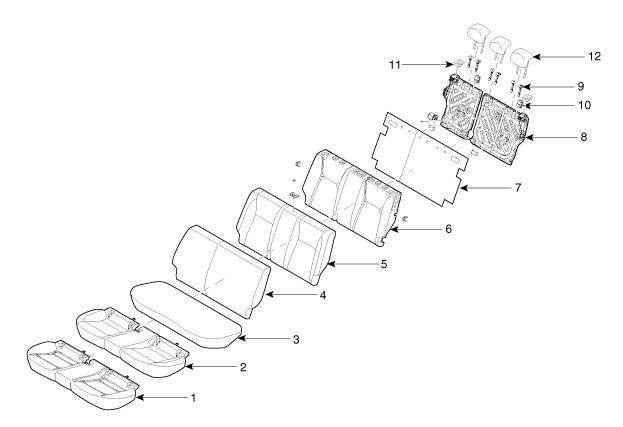 Компоненты заднего сиденья в сборе и расположение компонентов