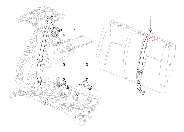 4. Натяжитель заднего центрального ремня безопасности. |