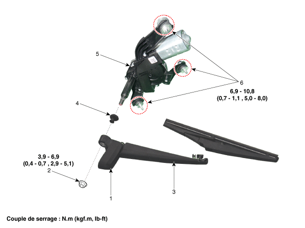 5. Двигатель заднего стеклоочистителя 6. Болт электродвигателя заднего стеклоочистителя |