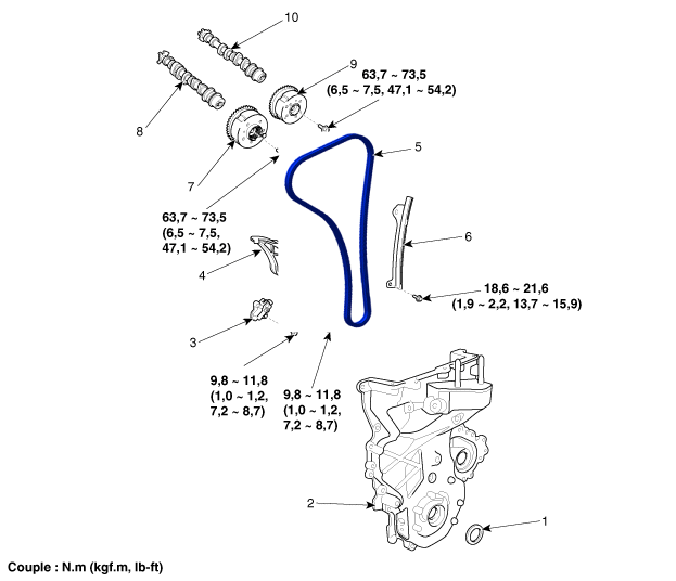 7. Выхлоп CVVT 8. Распредвал выпускных клапанов 9. Впускной вариатор 10. Впускной распредвал |